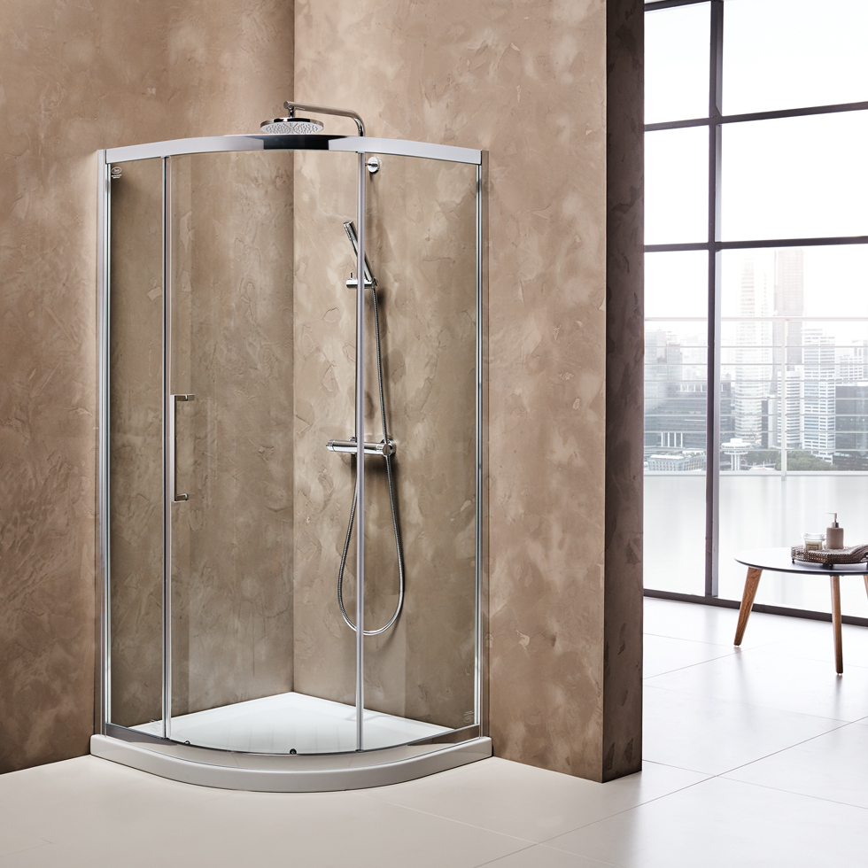 Καμπίνα ντουσιέρας 1/4 κύκλου με 2 σταθερά & 1 συρόμενο φύλλο (αντιστρεφόμενη)