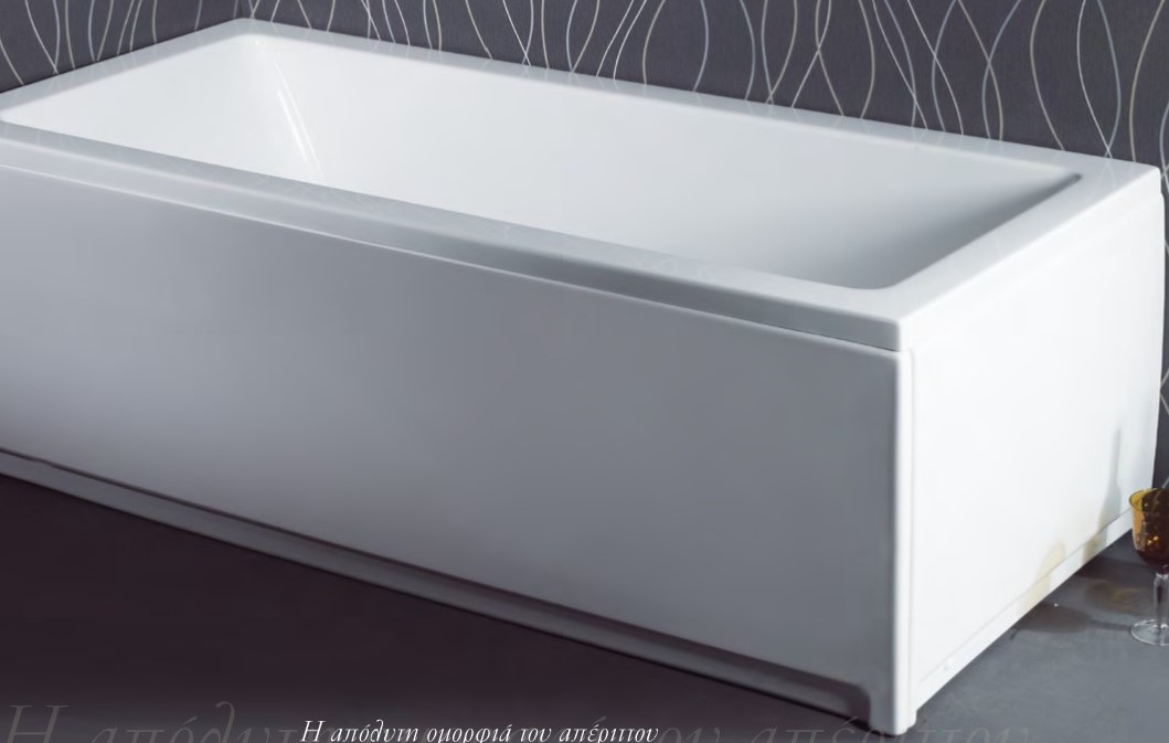 Παραλληλόγραμμη ευθύγραμμη ακρυλική μπανιέρα με εμπρόσθια και πλαϊνή μετώπη.