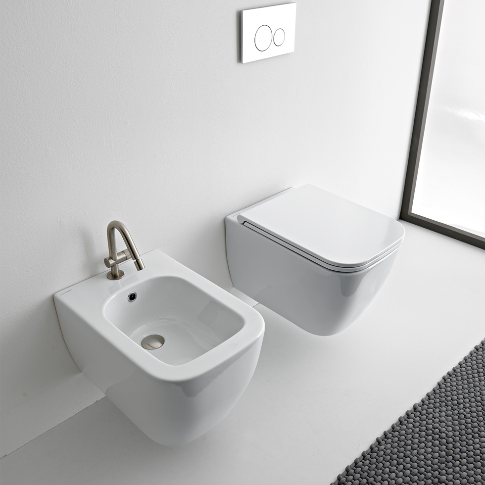 κρεμαστή λεκάνη rimless CleanFlush® με λεία εσωτερική επιφάνεια που εξασφαλίζει αποτελεσματική έκπλυση, υγιεινό περιβάλλον και εύκολο καθαρισμό