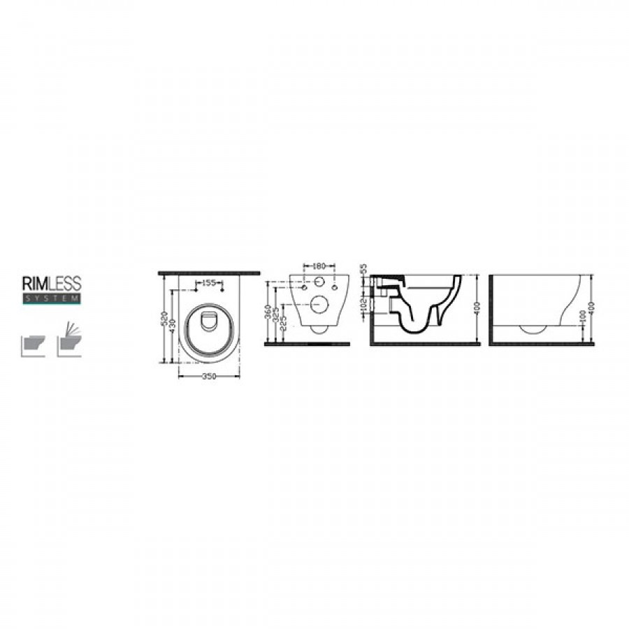 κρεμαστή λεκάνη με σύστημα Rimless που κατευθύνει το νερό κυκλικά, εξασφαλίζοντας καθολικό καθαρισμό,. Το συνηθισμένο ‘διπλό’ χείλος διανομής νερού, αφήνει στη θέση του ένα μονό χείλος που καθαρίζεται εύκολα