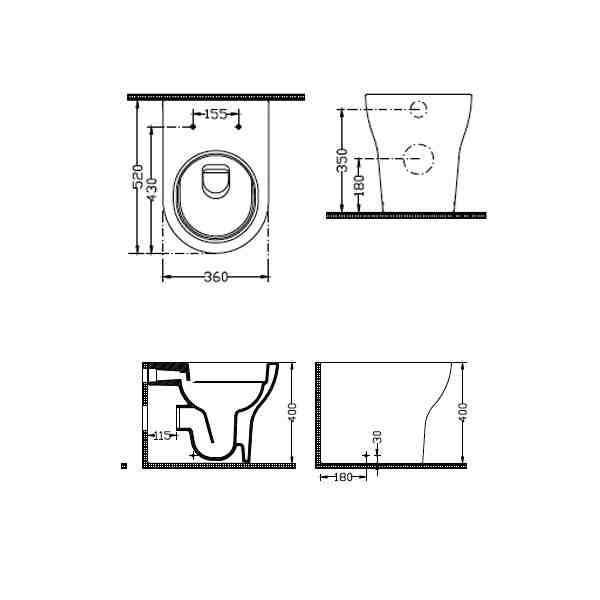 λεκάνη Υ.Π. BTW με σύστημα Rimless που κατευθύνει το νερό κυκλικά, εξασφαλίζοντας καθολικό καθαρισμό,. Το συνηθισμένο ‘διπλό’ χείλος διανομής νερού, αφήνει στη θέση του ένα μονό χείλος που καθαρίζεται εύκολα