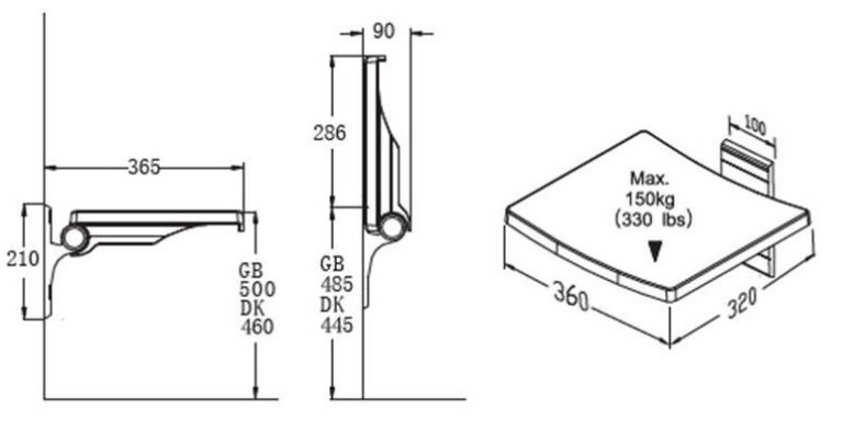 Επιτοίχιο κάθισμα μπάνιου, με σταθερό ύψος. Η βάση του είναι κατασκευασμένη από αλουμίνιο και το κάθισμα από θερμοπλαστικό. Έχει μέγιστη αντοχή 150 κιλών. Η ανάκληση του προσφέρει εύκολη πρόσβαση στο μπάνιο.