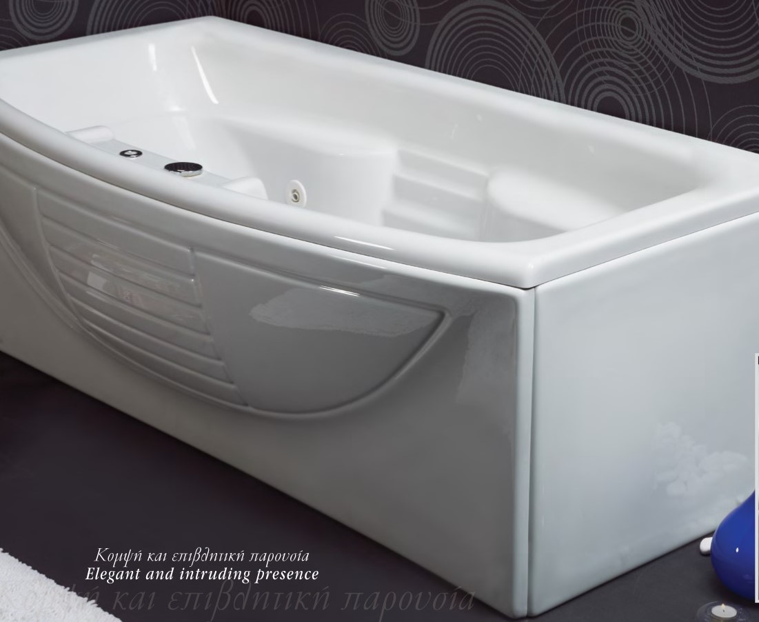 Παραλληλόγραμμη ευθύγραμμη ακρυλική μπανιέρα με εμπρόσθια και πλαϊνή μετώπη.