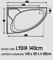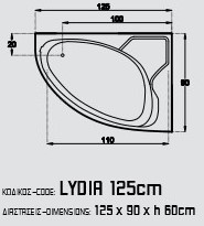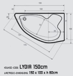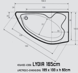 Γωνιακή ασύμμετρη μπανιέρα (σε αριστερό ή δεξί σχεδιασμό) με εμπρόσθια μετώπη.