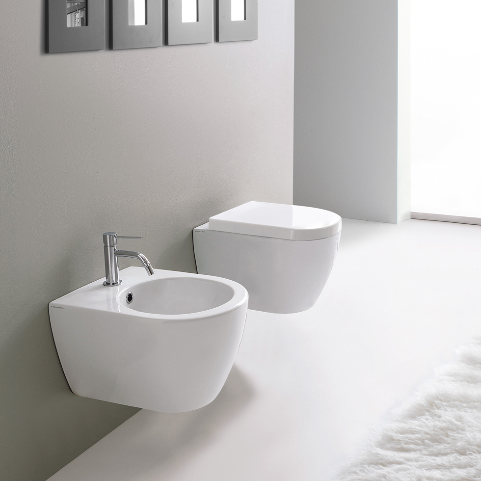 κρεμαστή λεκάνη rimless CleanFlush® με λεία εσωτερική επιφάνεια που εξασφαλίζει αποτελεσματική έκπλυση, υγιεινό περιβάλλον και εύκολο καθαρισμό