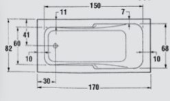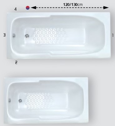 Παραλληλόγραμμη ευθύγραμμη ακρυλική μπανιέρα με εμπρόσθια και πλαϊνή μετώπη.