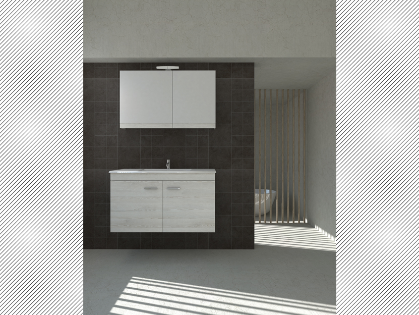 Η συγκεκριμένη σύνθεση της σειράς παράγεται σε 4 διατάσεις 100-80-65-55cm με νιπτήρα , σε μία απόχρωση λάκας σε λευκό γυαλιστερό και σε 4 αποχρώσεις μελαμίνης όψης ξύλου.