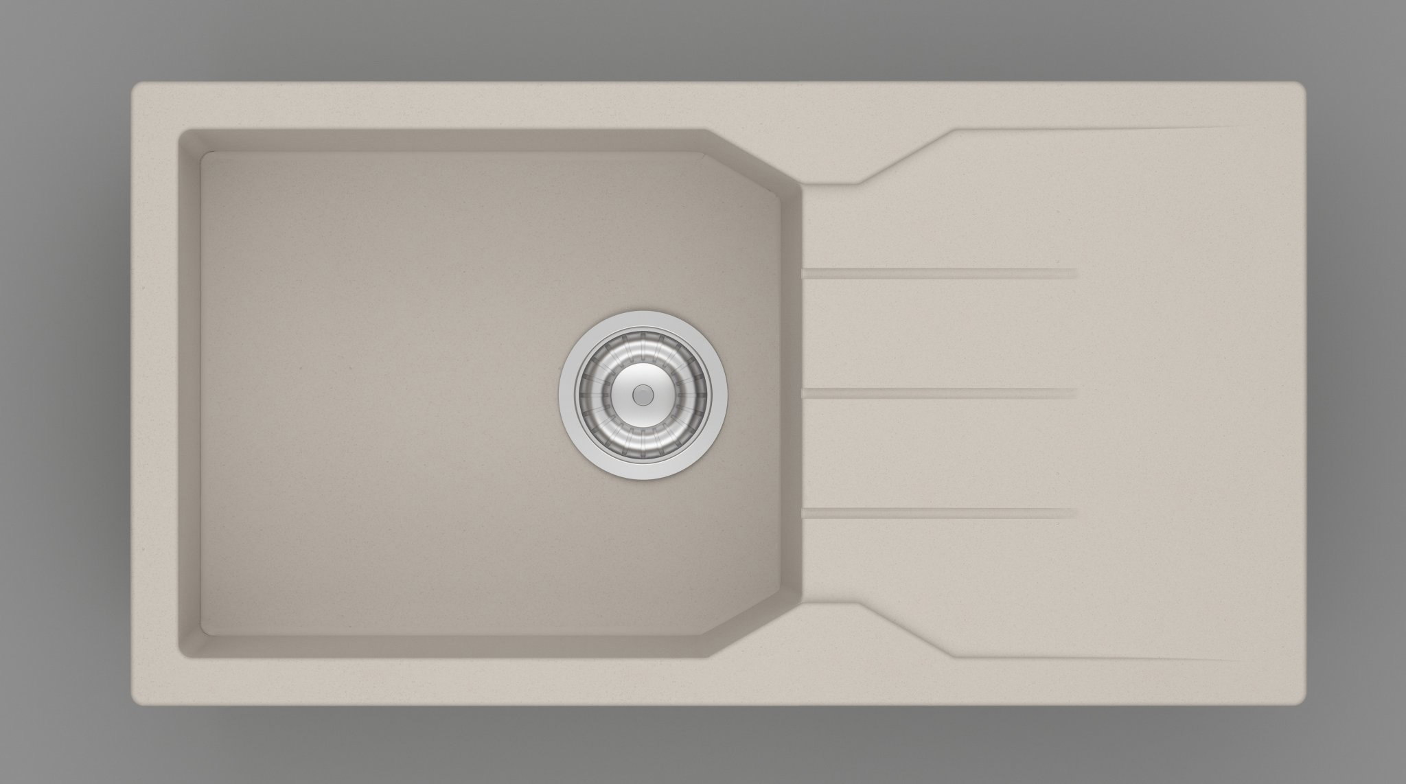 Νεροχύτης κουζίνας από φυσικό ορυκτό γρανίτη & συνθετικές ρητίνες. Δημοφιλής σχεδιασμός με 1 άνετη γούρνα & επιφάνεια αποστράγγισης. Εξωτερικές διαστάσεις 85,7cm Χ 49,7cm & μέγιστο βάθος γούρνας 20cm. Εντοιχίζεται σε ερμάριο 55cm και συνοδεύεται από βαλβίδα αποχέτευσης με σύστημα υπερχείλισης & το αντίστοιχο σιφόν. Διατίθεται σε ποικιλία 6 γρανιτικών χρωμάτων.