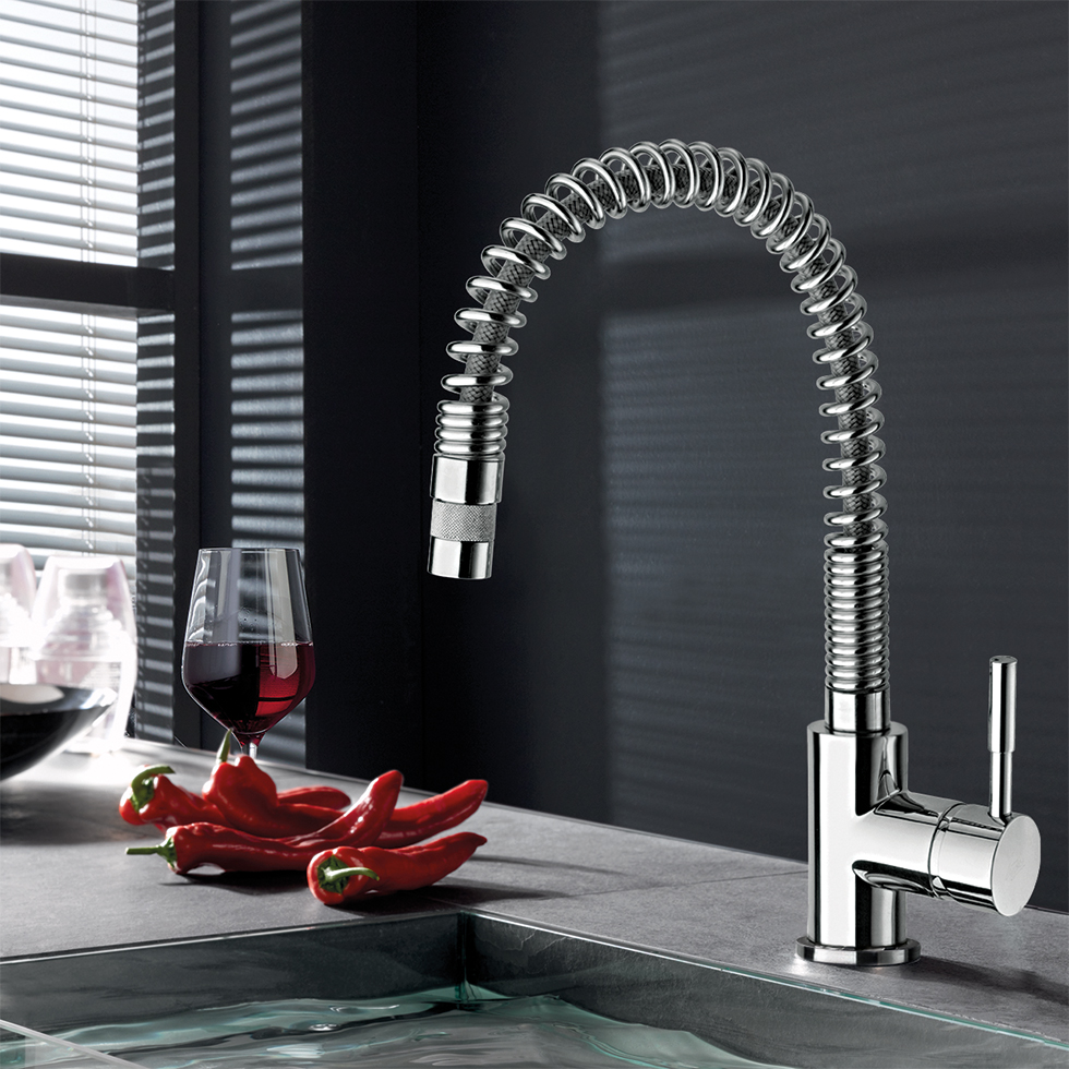 Ελατηρίου, με συρόμενο ντους & άθραυστο σπιράλ αυτόματης επαναφοράς. Ύψος 37,4 εκ., προβολή 23,8 εκ